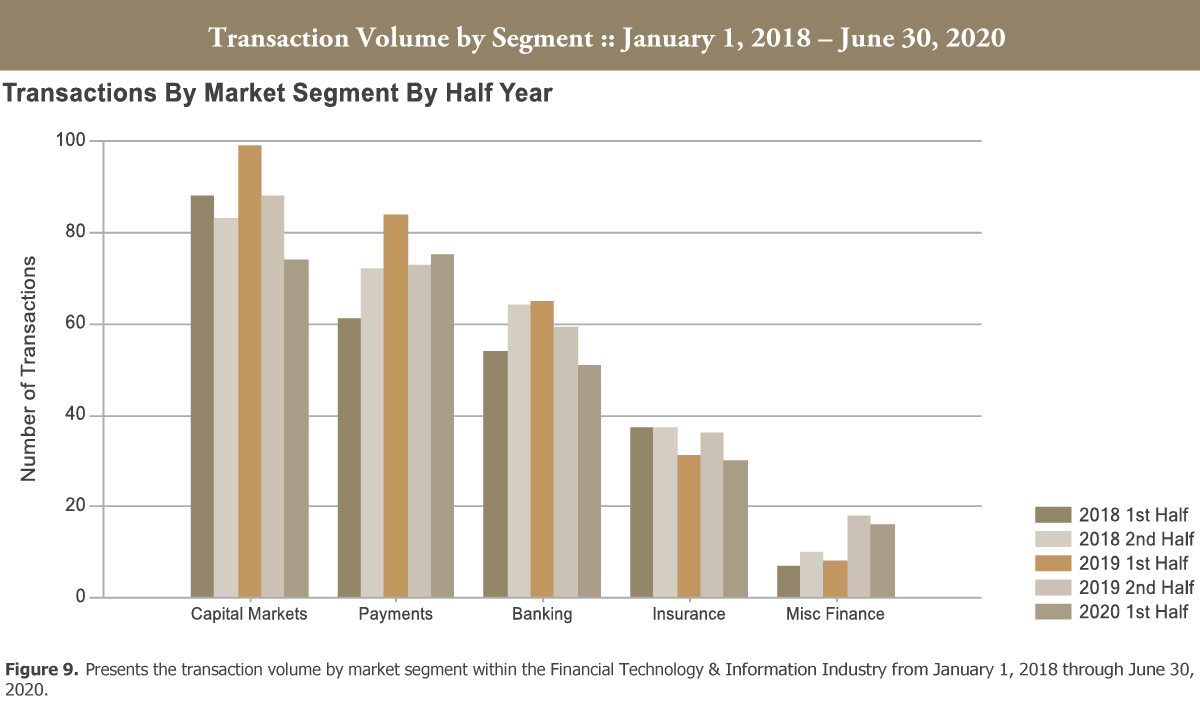 The highest value deal in 1st Half 2020 was Morgan Stanley’s announced acquisition of E-Trade, an online brokerage company, for $13.13 billion.
