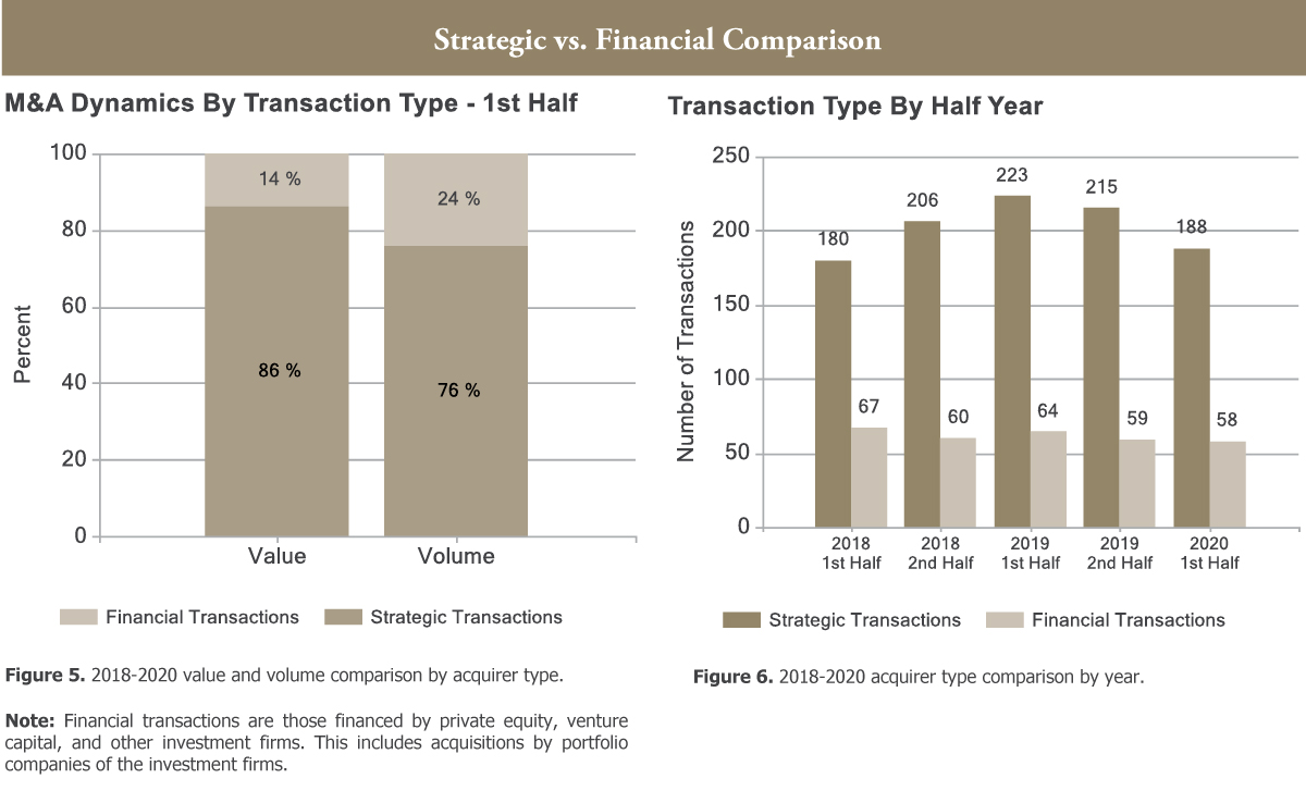 Total transaction volume in 1st Half 2020 decreased by ten percent over 2nd Half 2019, from 274 to 246. However, private equity volume remained nearly constant during this timeframe.