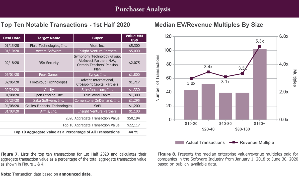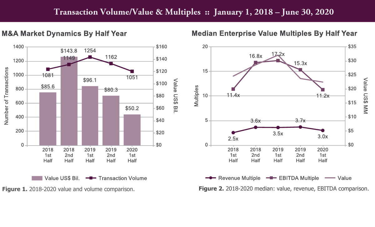 Transactions from 1st Half 2018 to 1st Half 2020 with enterprise values above $160 million received a median revenue multiple of 5.3x, whereas those in the $10-160 million range garnered a median revenue multiple of 3.2x.