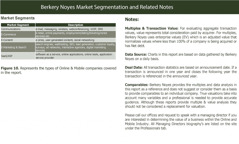 Disclosed median enterprise value multiples for all segments combined in this report during the last 30 months were 3.0x revenue and 12.5x EBITDA.